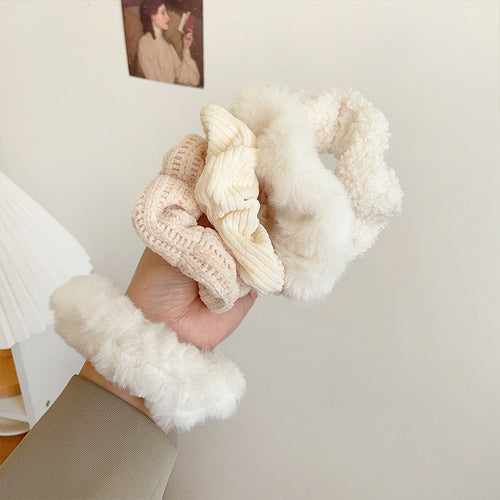 Solid Color Hair Scrunchies Women Hairband Ponytail Holder Faux Fur Rabbit Ears Hair Rope Hair Ties Cute Girls Hair Accessories