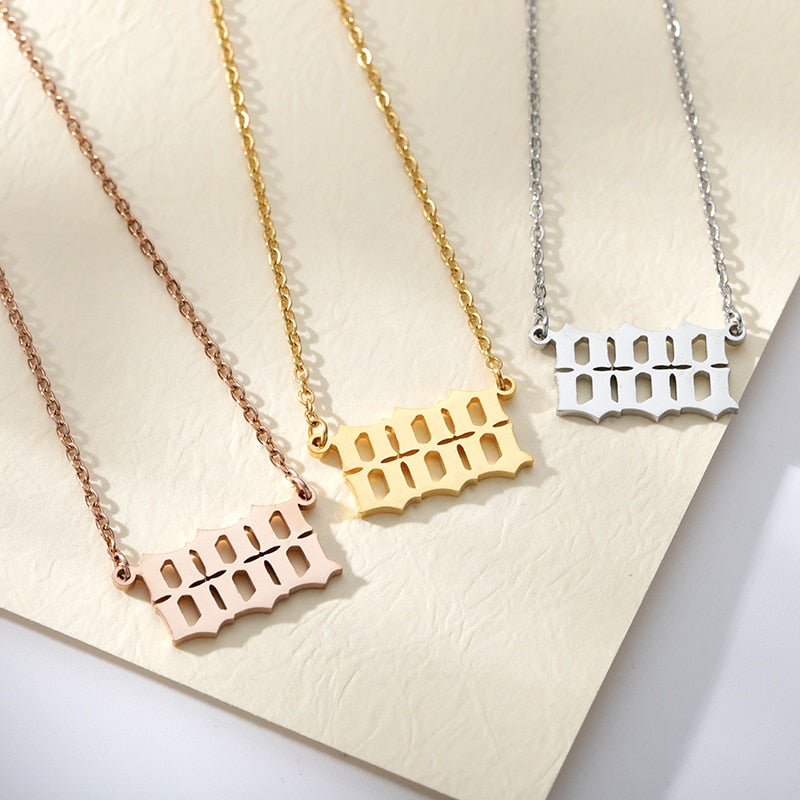 777 angel number neckalce for women Stainless Steel 111 222 333 444 555 pendant necklace old english font number chain Jewelry