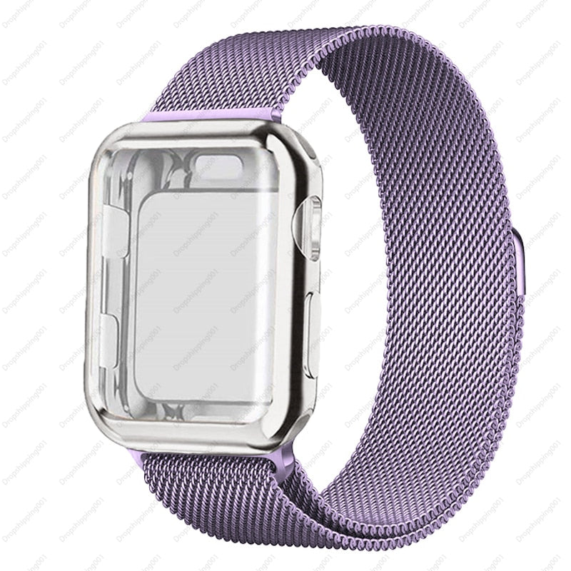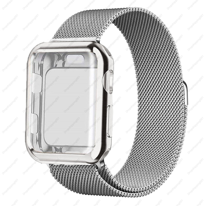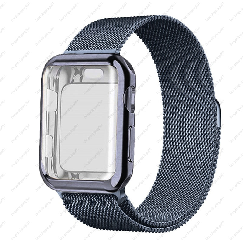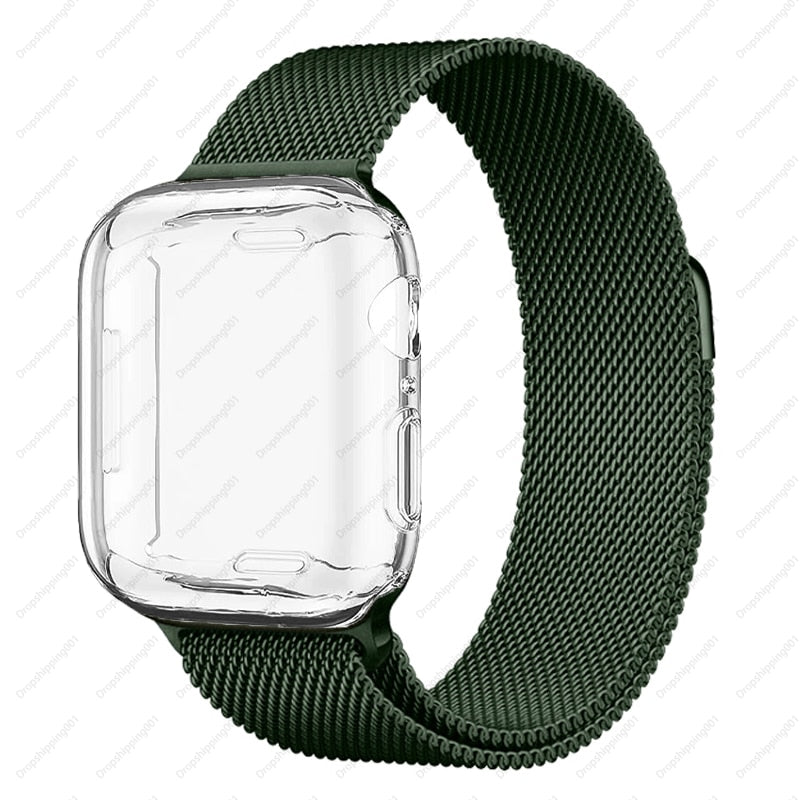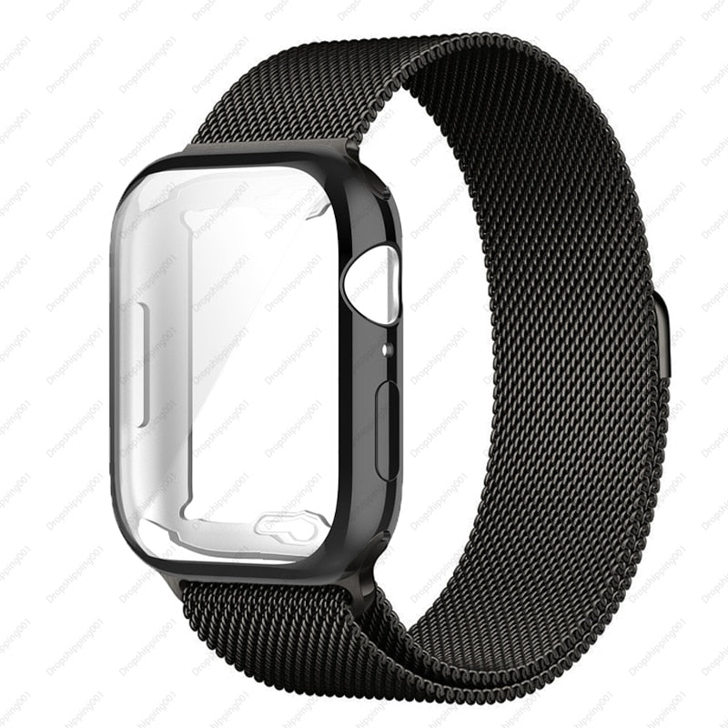 Case+strap for Apple Watch Band 45mm 44mm 40mm 41mm 38mm 42mm Stainless steel Metal magnetic Loop bracelet iwatch 8 7 6 3 4 5 se