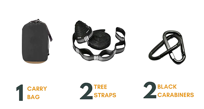 The ComfortCove comes with two straps.15+1 loops (32 total). no-stretch heavy duty triple stitched seams. Over 18 feet apart make it easy to find two trees,