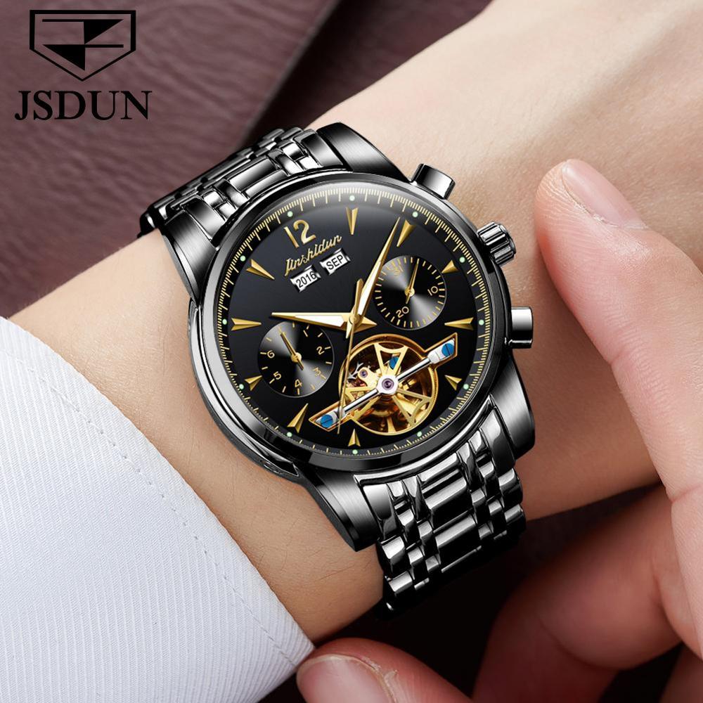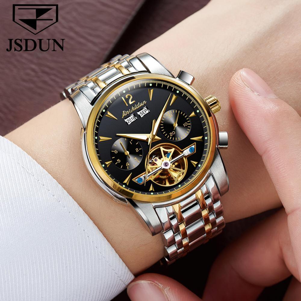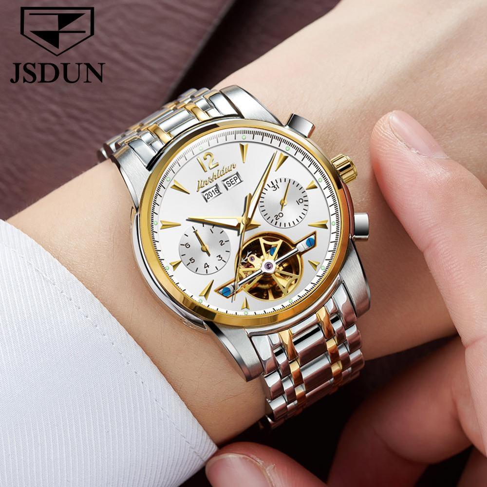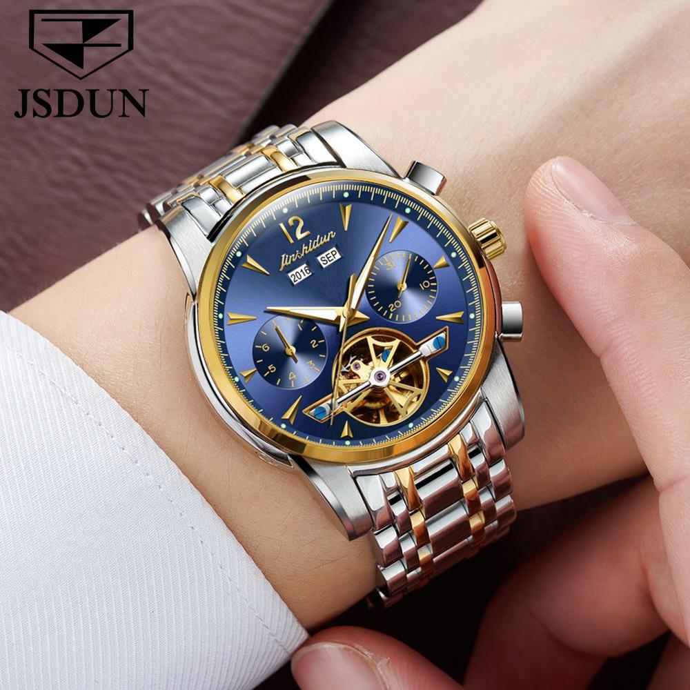 JSDUN Top Luxury Brand 8738 Men Fashion Business Mechanical Auto Watch Water Resistant Stainless Steel Band Montre Homme Clock .