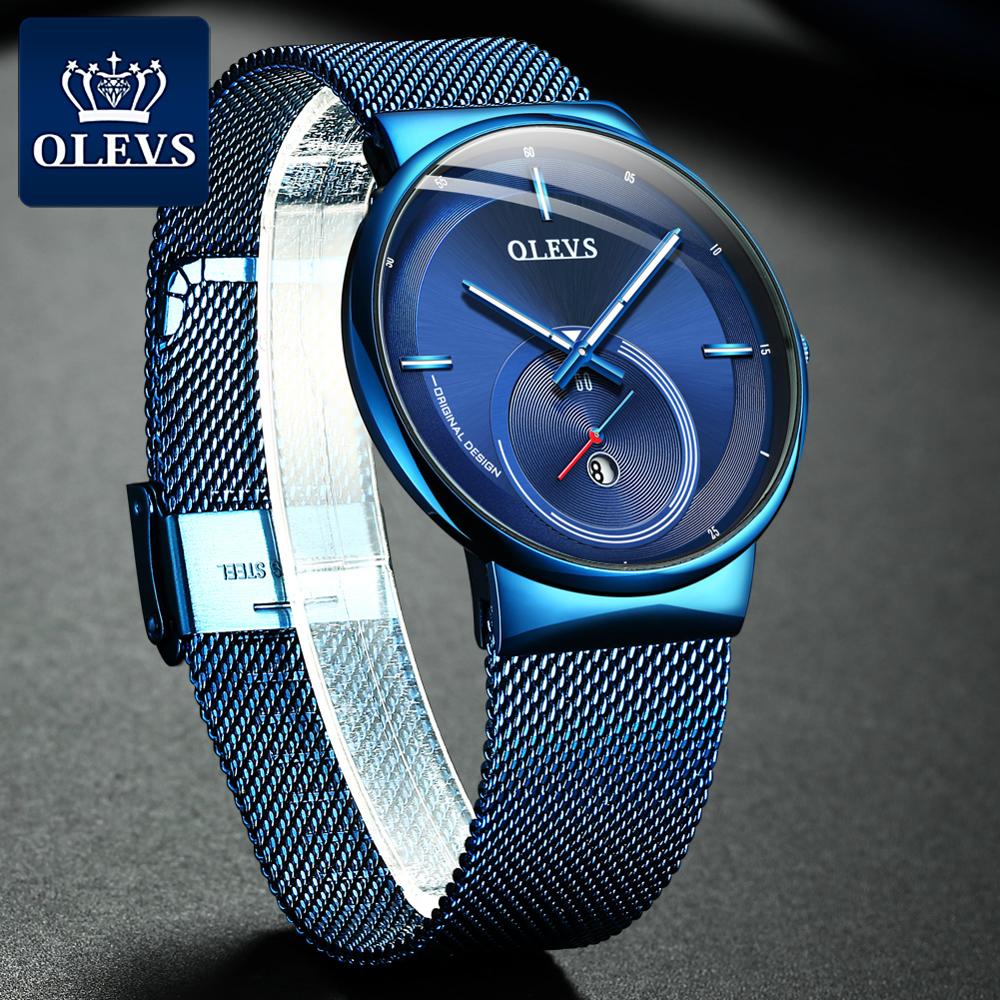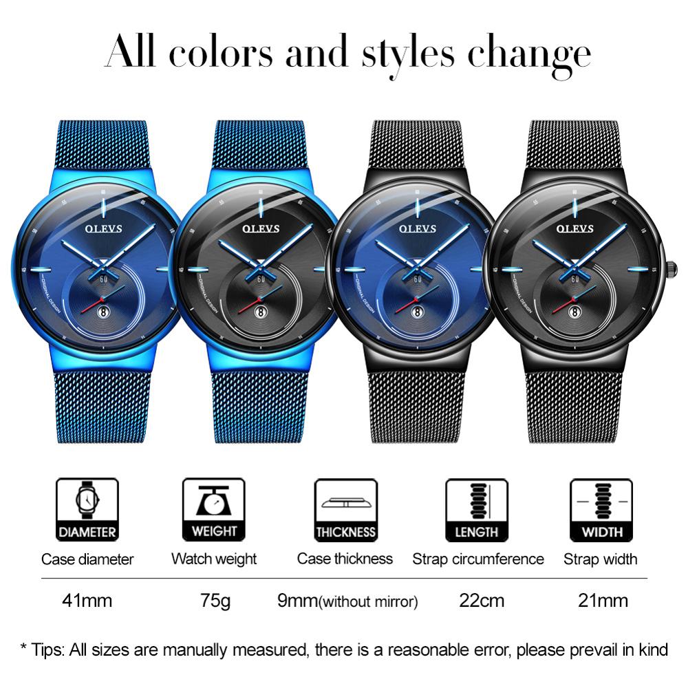 Luxury Brand OLEVS Men Fashion Casual Quartz Watch Mesh Band Auto Date Chronograph WristWatch OEM logo Watch .