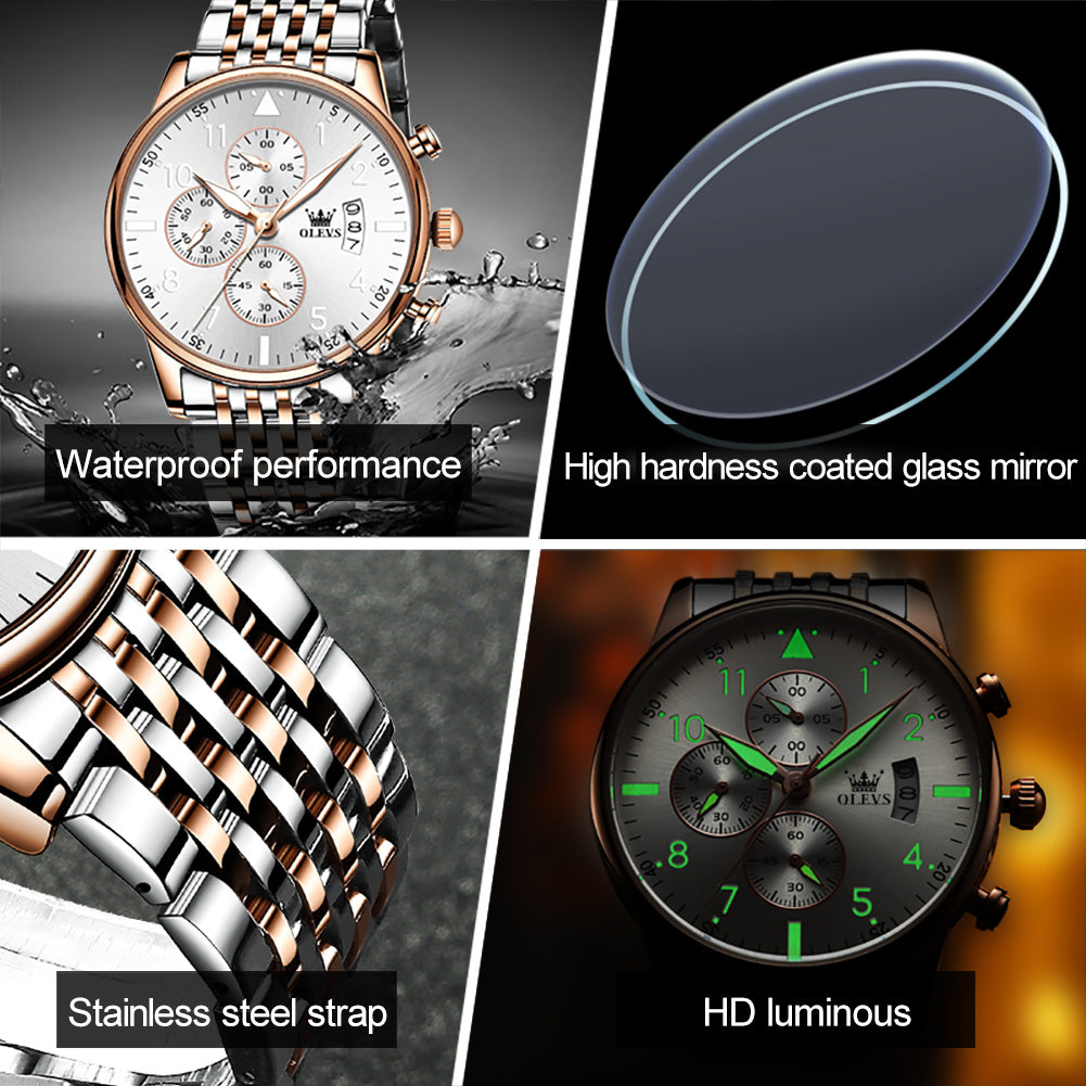 Auto Date, chronograph, Multiple Time Zone, Water Resistant, Waterproof