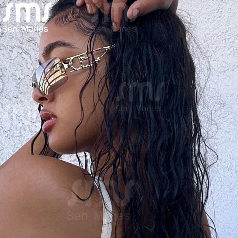 New Punk One Piece Sunglasses Women 2000'S Brand Designer Sun Glasses Y2k Wrap Around Sunshade Eyeglasses  Eyewear Goggles