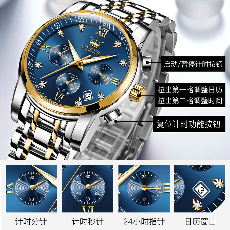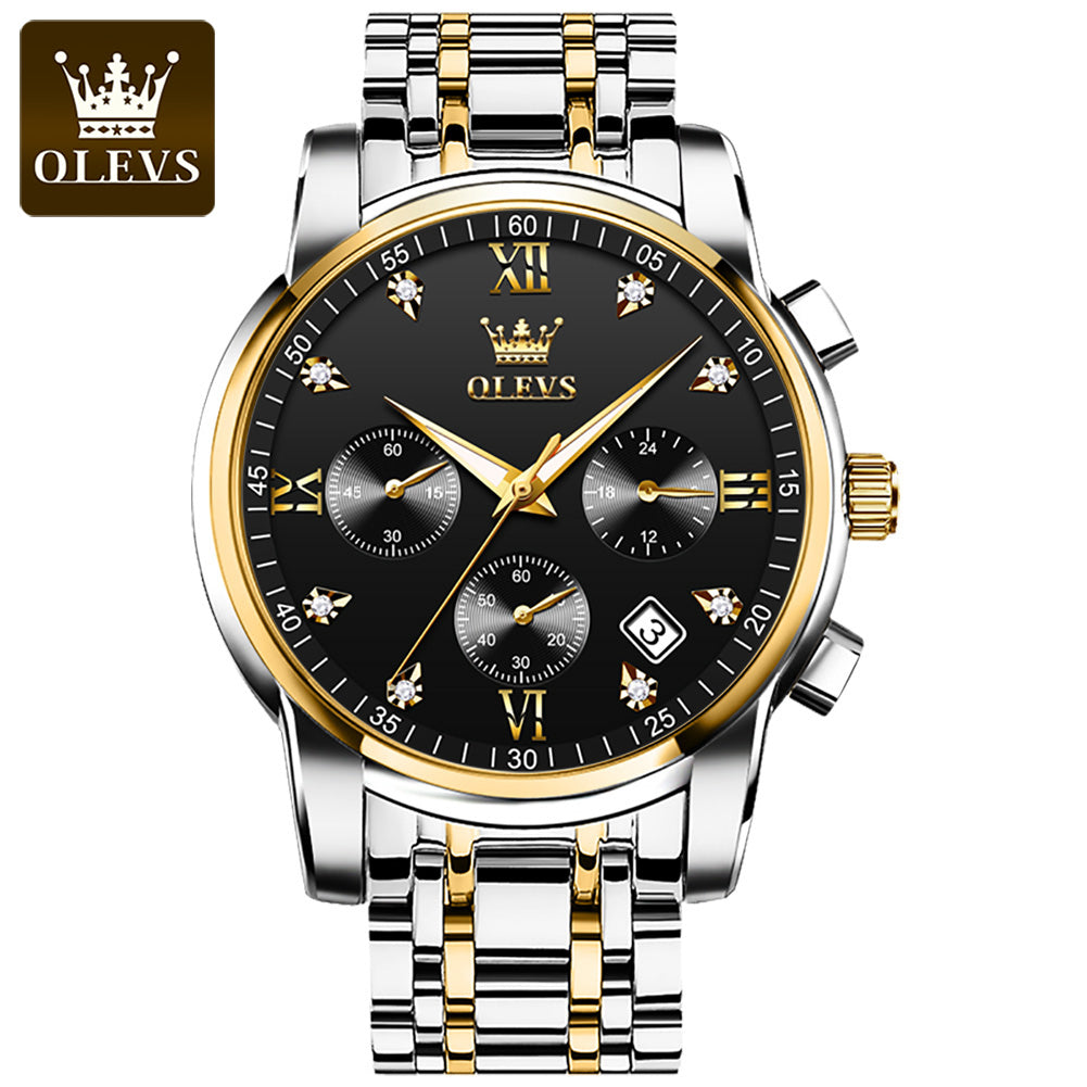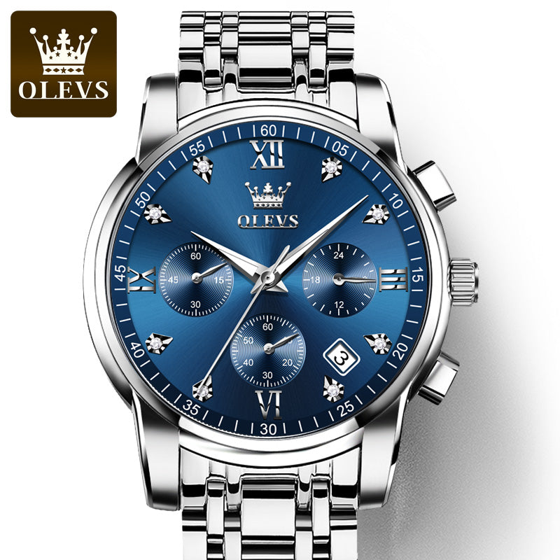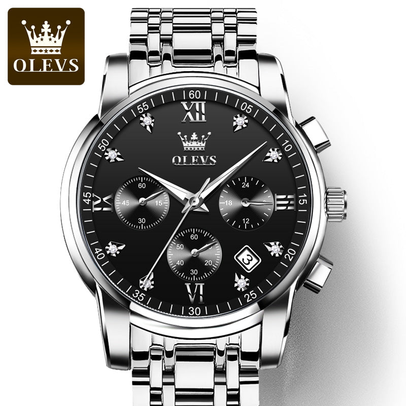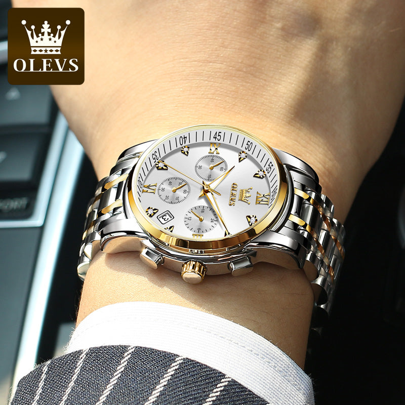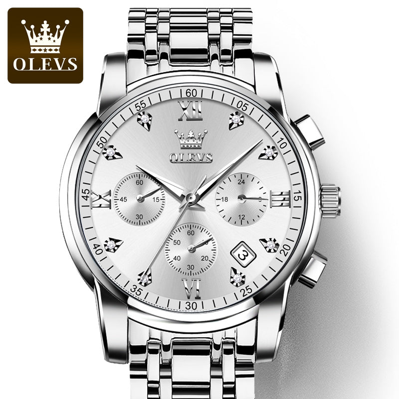 OLEVS Men Fashion Quartz WristWatch Top Luxury Stainless Steel Band Power Reserve Chronograph Relojes Watch