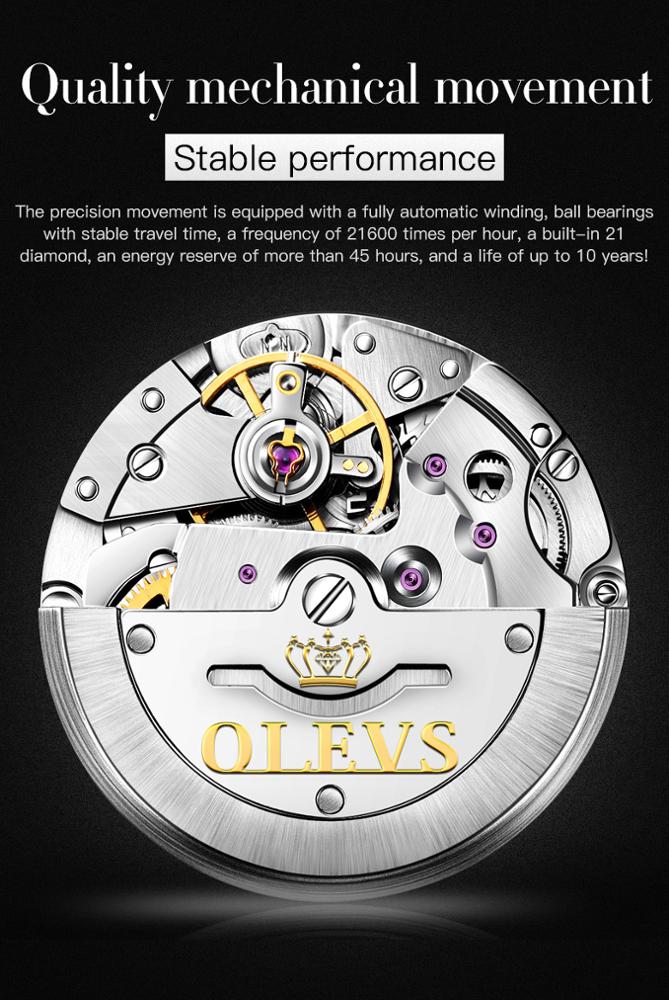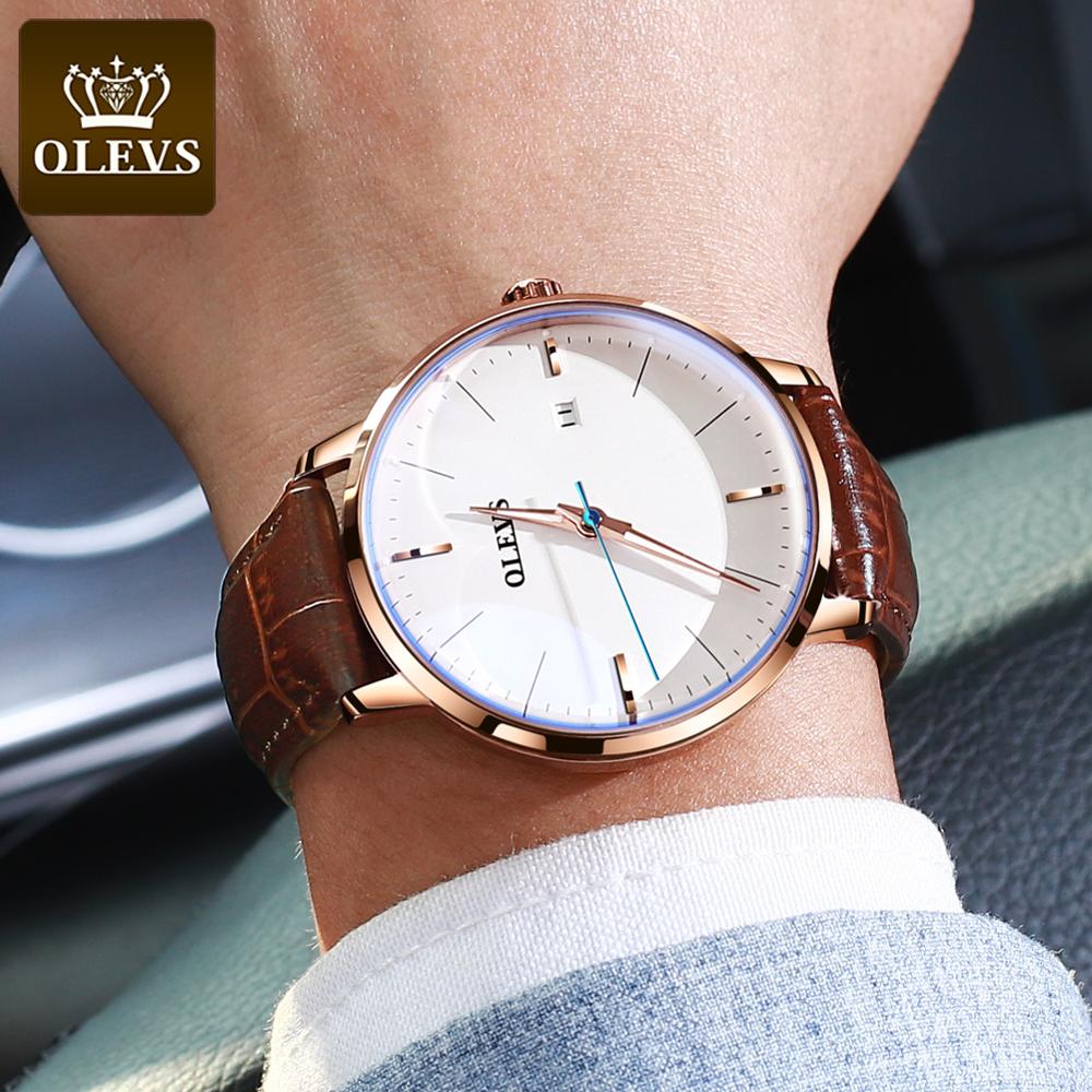 OLEVS 6609 Luxury Brand Fashion Sport Mechanical Men Watch Classic Calendar Date Water Resistant Feature Leather Band Watch .