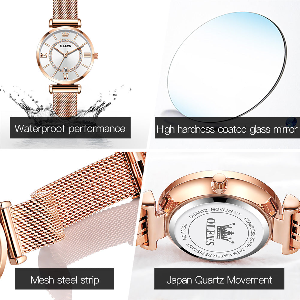 - ROSE GOLD WOMEN WATCH - Japanese quartz movement keeps time accurate. Analog display and simple dial design. Scratch-resistant, mineral glass, stainless steel back case. Give you the rose gold classic & elegant.