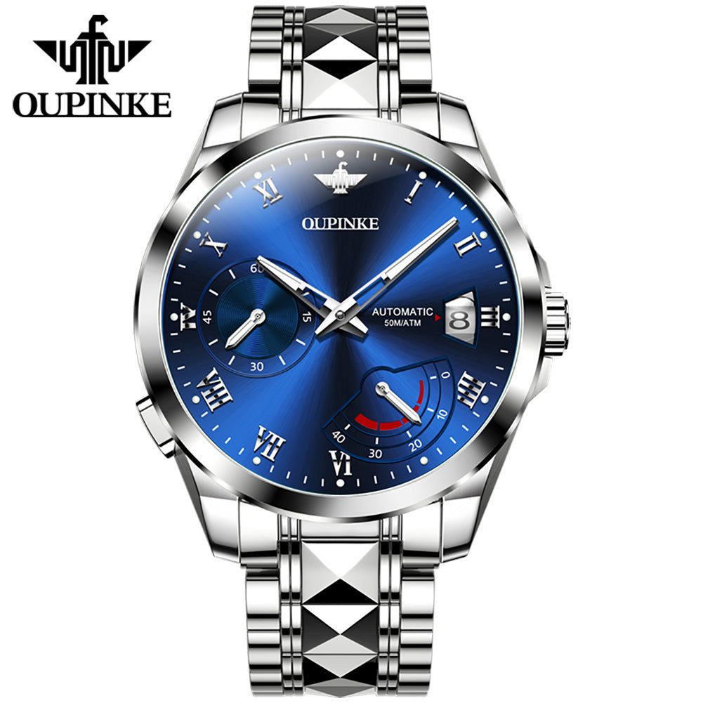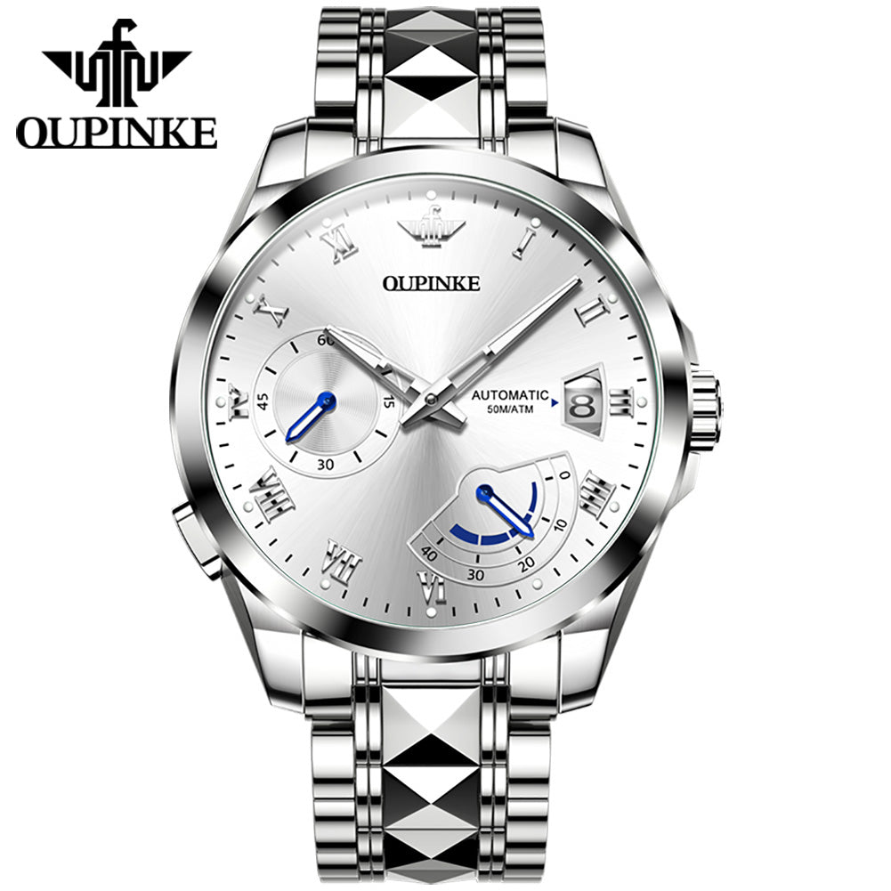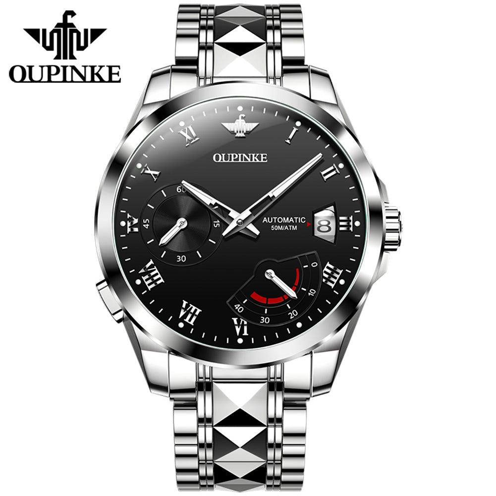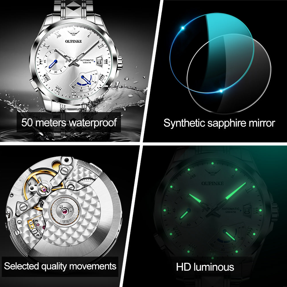 OUPINKE Wrist Watches Men Automatic Mens Luxury Watch Stainless Steel Case Three Eyes Chronograph Wristwatch