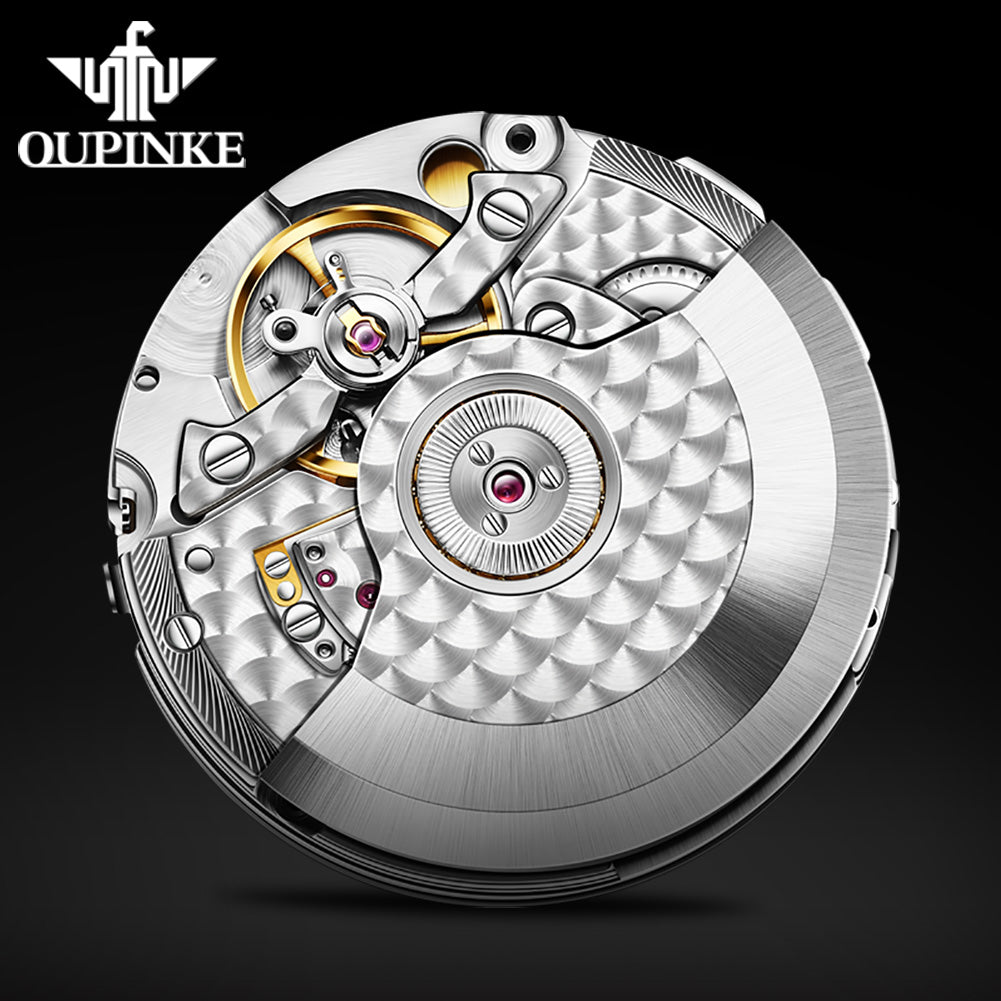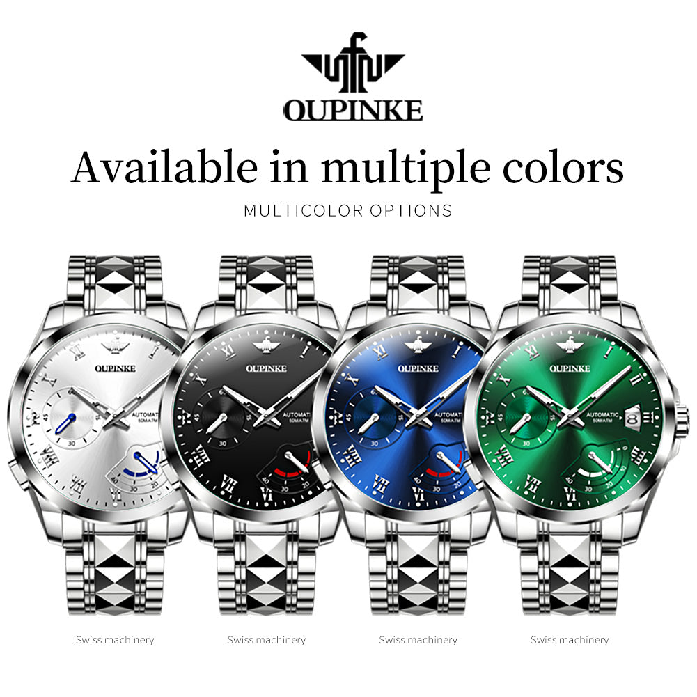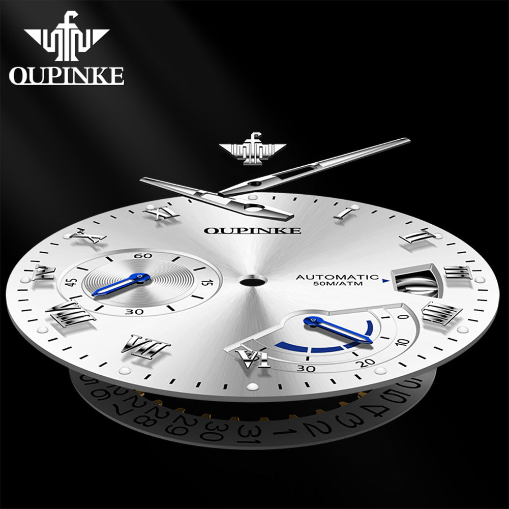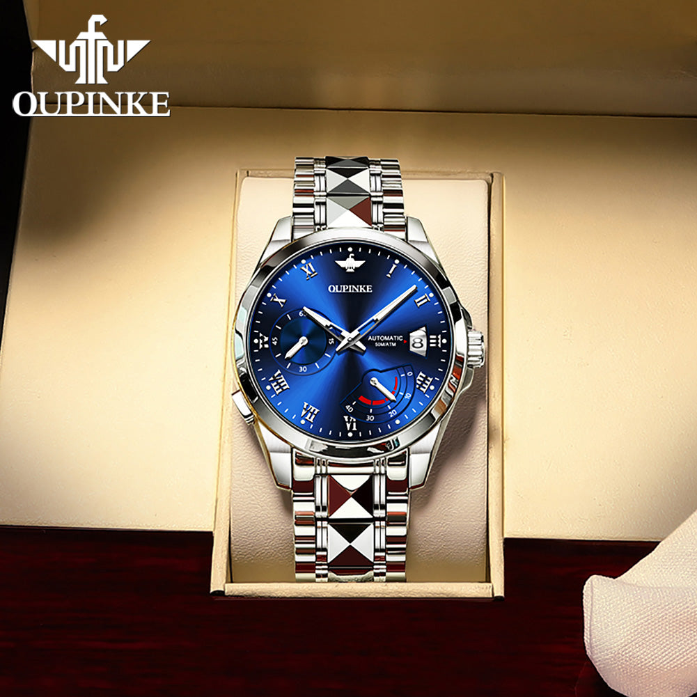 OUPINKE Wrist Watches Men Automatic Mens Luxury Watch Stainless Steel Case Three Eyes Chronograph Wristwatch