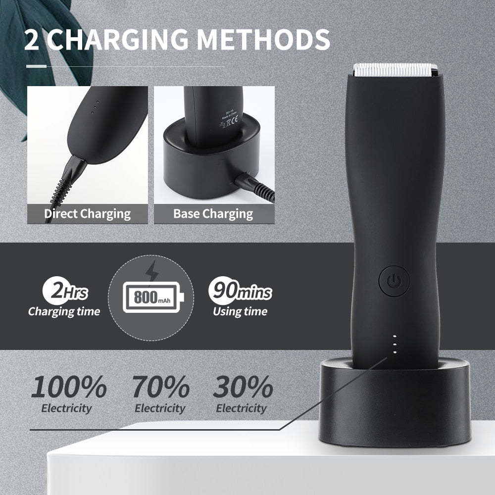 TRIM THE WAY YOU WANT TO: Bare, Buzz or Bush. In or out the shower. The Trimmer is ready for action. It's shock-proof, waterproof, and features a high-quality ceramic blade that is safer and gentler on the skin than a traditional body hair removal tool. When fully charged, it's good for 90 minutes of uninterrupted trimming.