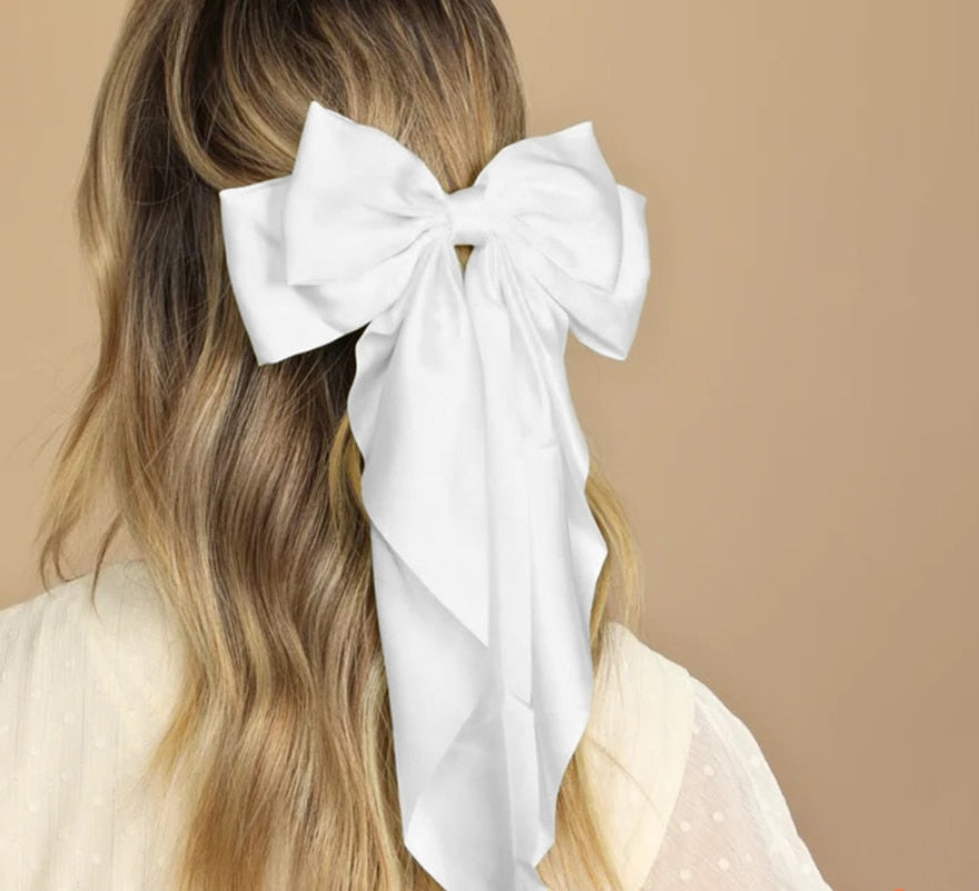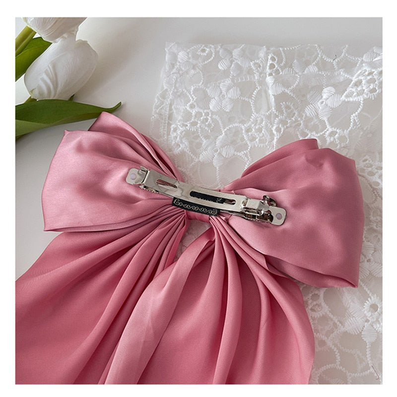 Solid Color Big Large Satin Bow Hairpins Barrettes For Women Girl Wedding Long Ribbon Korean Hair Clip Hairgrip Hair Accessories
