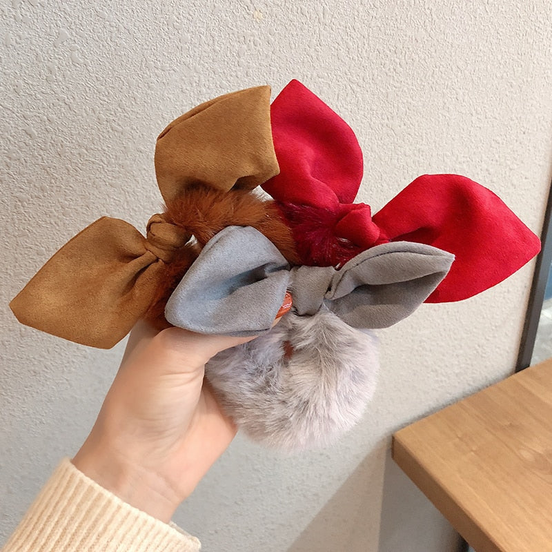 Solid Color Hair Scrunchies Women Hairband Ponytail Holder Faux Fur Rabbit Ears Hair Rope Hair Ties Cute Girls Hair Accessories